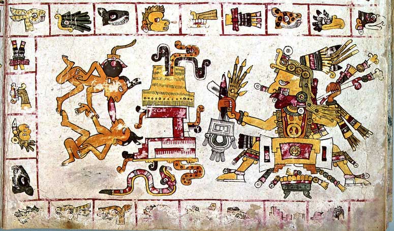 El pensamiento mesoamericano es profundamente dialéctico. Su visión de lo existente es la de seres que no dejan de contraponerse y luchar unos con otros. El conflicto incesante ha sido ilustrado por León-Portilla (1956) con el mito de los hijos de Ometéotl, los hermanos Tezcatlipoca y Quetzalcóatl, que aparecen como “fuerzas en tensión”, que “llevan en sí mismos el germen de la lucha”, que “se combaten, se eliminan uno a otro y reaparecen de nuevo en el campo de batalla del universo” (p. 133).