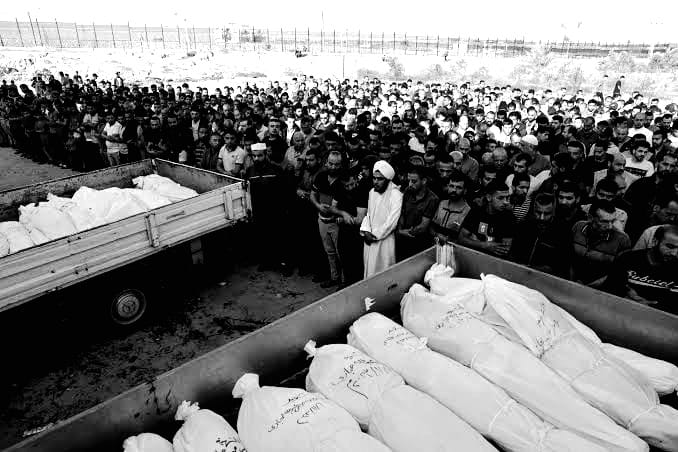 En el último mes, según un informe de la ONU, el Ejército Israelí ha matado al menos a 10000 palestinxs, la mayoría civiles, entre ellxs más de 4000 niñxs y casi 3000 mujeres. «En promedio, un niño muere y dos resultan heridos cada 10 minutos», ha informado la Agencia de la ONU para los Refugiados Palestinos en Oriente Próximo (UNRWA). Otra vez deben morir muchxs palestinxs inocentes por cada israelí muertx.